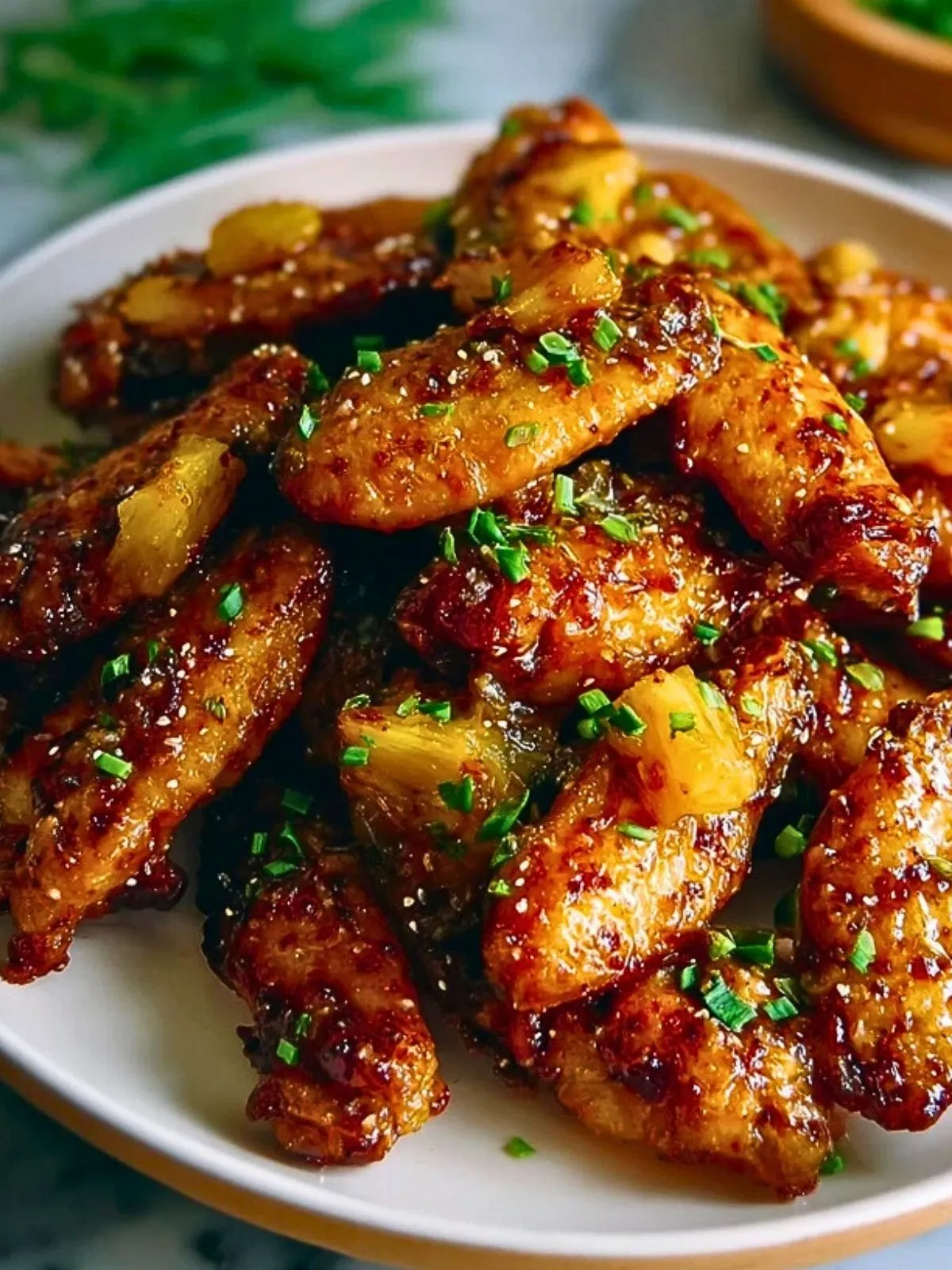 Des ailes de poulet croustillantes nappées d’une sauce caramélisée au sucre brun et relevées par des morceaux d’ananas frais. Une recette idéale pour l’apéro ou un repas convivial, mêlant saveurs sucrées-salées et exotisme, facile à préparer à la maison pour régaler famille et amis.