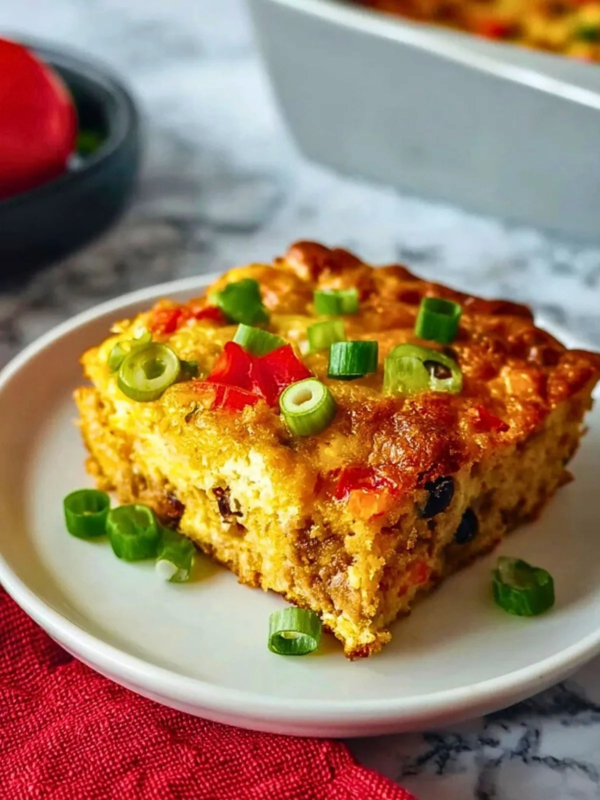 J’adore cette recette parce qu’elle réunit tout ce qu’on attend d’un bon petit-déjeuner salé : une texture tendre, du fromage gratiné, une garniture généreuse et des saveurs relevées mais équilibrées. Les œufs lient parfaitement l’ensemble, tandis que les légumes et les épices apportent fraîcheur et profondeur. Chaque part est copieuse, moelleuse et très satisfaisante.