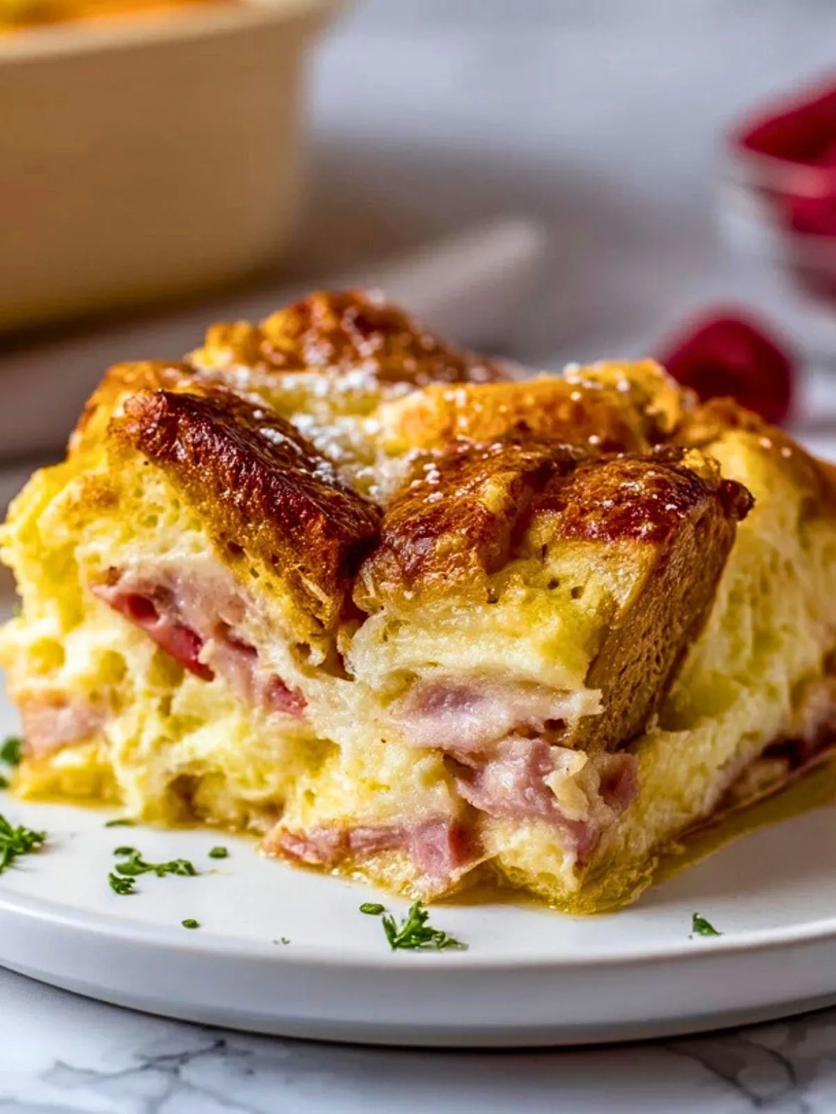 Keywords: casserole petit déjeuner monte cristo, recette brunch facile, casserole jambon fromage, brunch au four, petit déjeuner familial