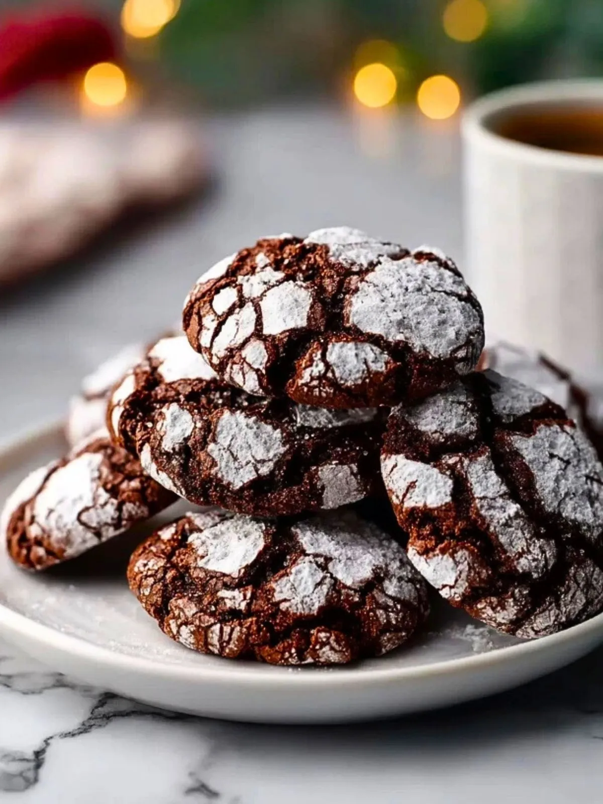 Cookies chocolat double craquelés ultra fondants, à la surface joliment fissurée et recouverte de sucre glace, parfaits pour les fêtes ou les goûters d’hiver. Texture contrastée : croûte craquante, cœur moelleux, goût chocolat intense. Recette facile et impressionnante, idéale à offrir ou partager.