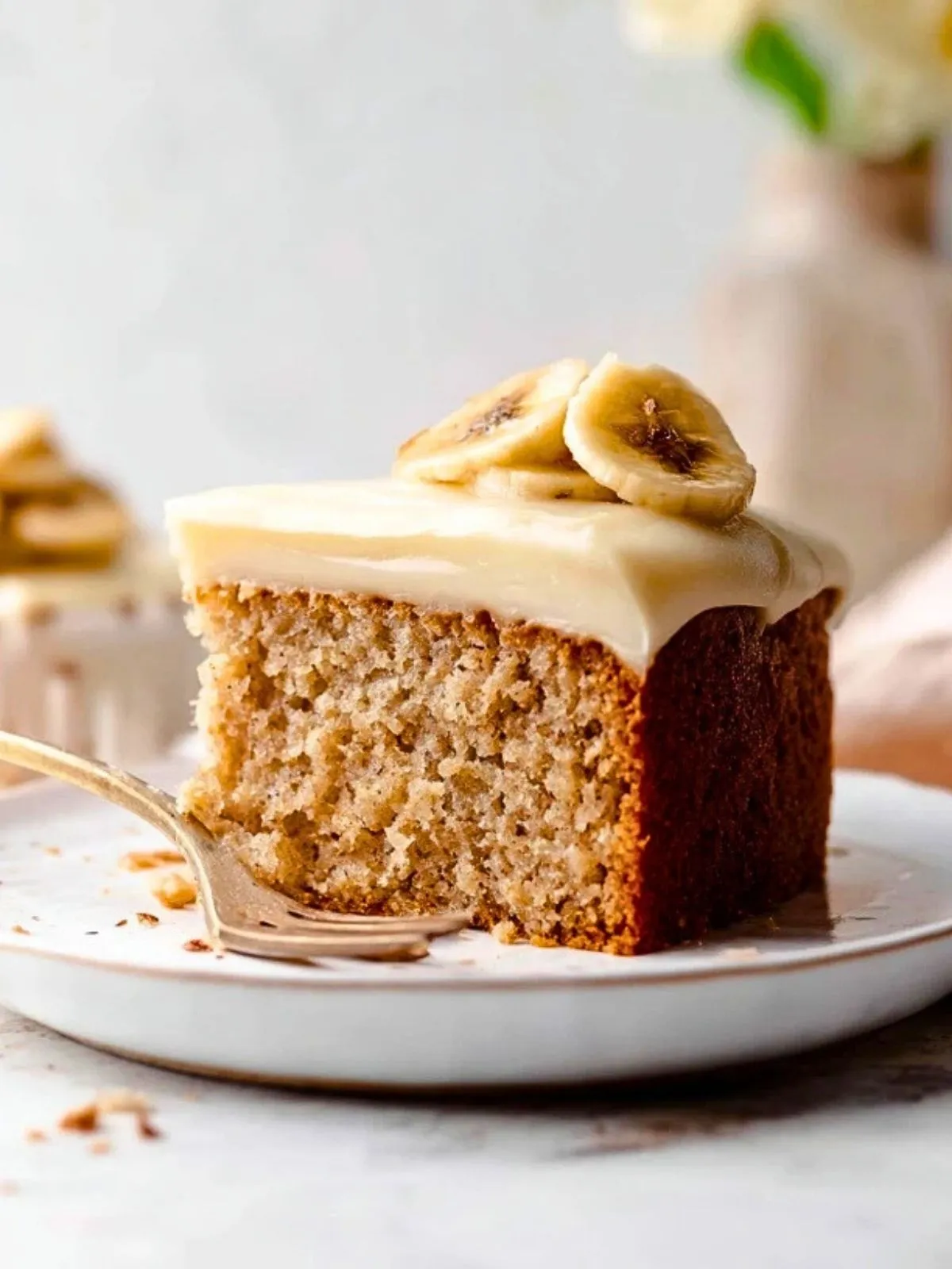 Ce gâteau à la banane est moelleux à souhait et délicatement parfumé. Le glaçage au fromage à la crème apporte une fraîcheur onctueuse qui contraste à merveille avec la douceur de la banane. C’est aussi une recette zéro gaspillage pour recycler les bananes trop mûres, et elle plait autant aux enfants qu’aux adultes.