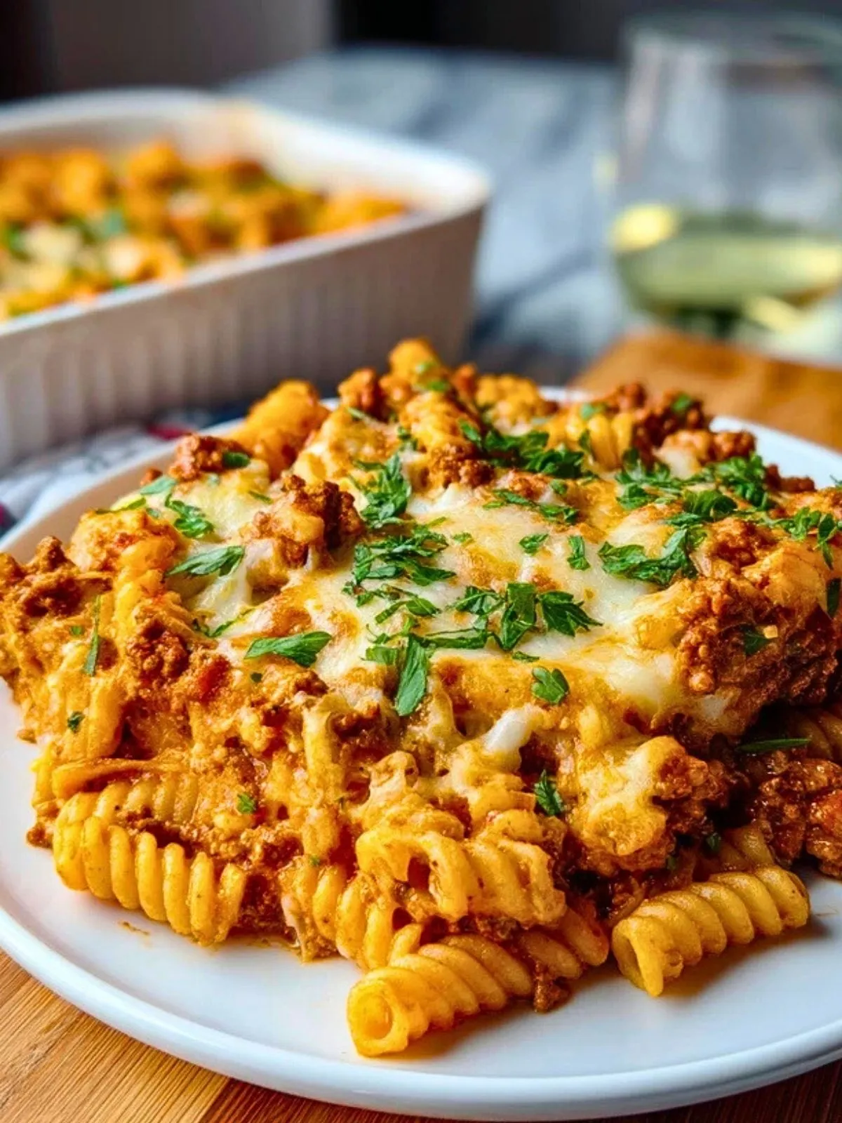 Il faut conserver un bon équilibre entre pâtes, viande et sauce. Ne réduisez pas trop la quantité de sauce tomate et n’oubliez pas la touche de crème qui adoucit et lie l’ensemble. Un court temps de repos après cuisson aide aussi le plat à se stabiliser sans se dessécher.