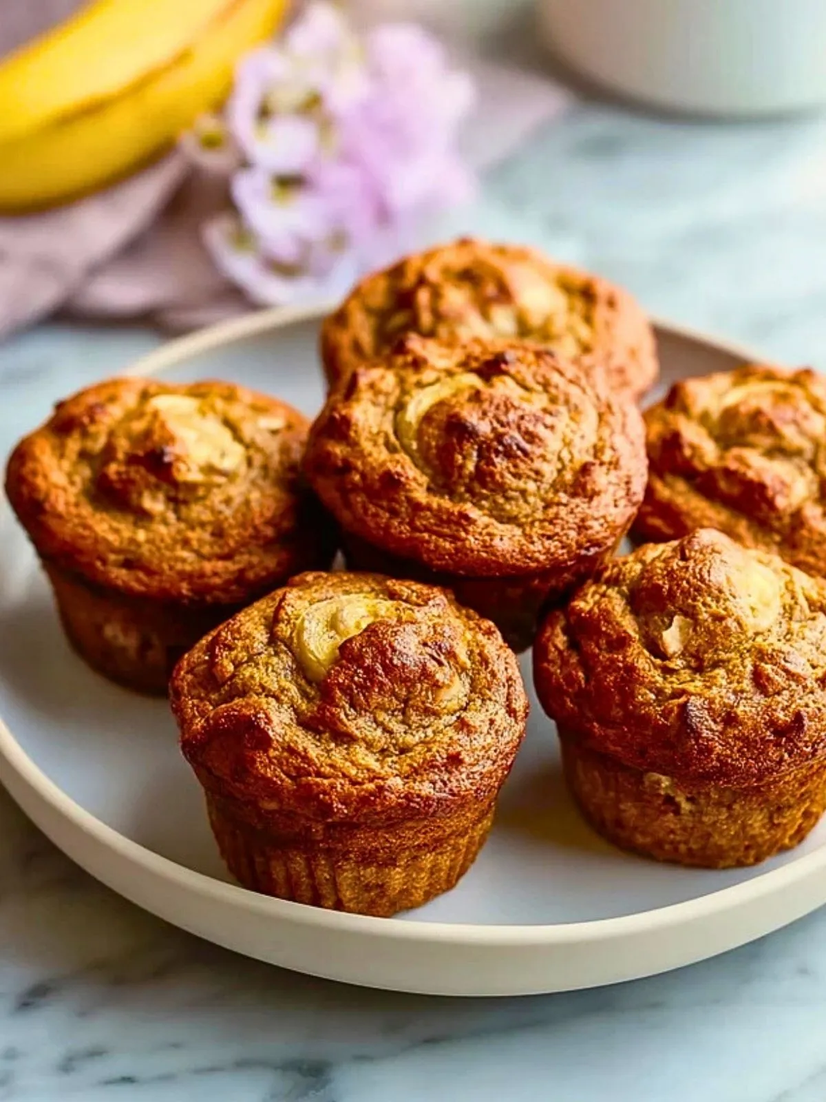 Keywords: muffins banane protéinés, muffins au fromage cottage, muffins riches en protéines, collation saine, petit-déjeuner banane
