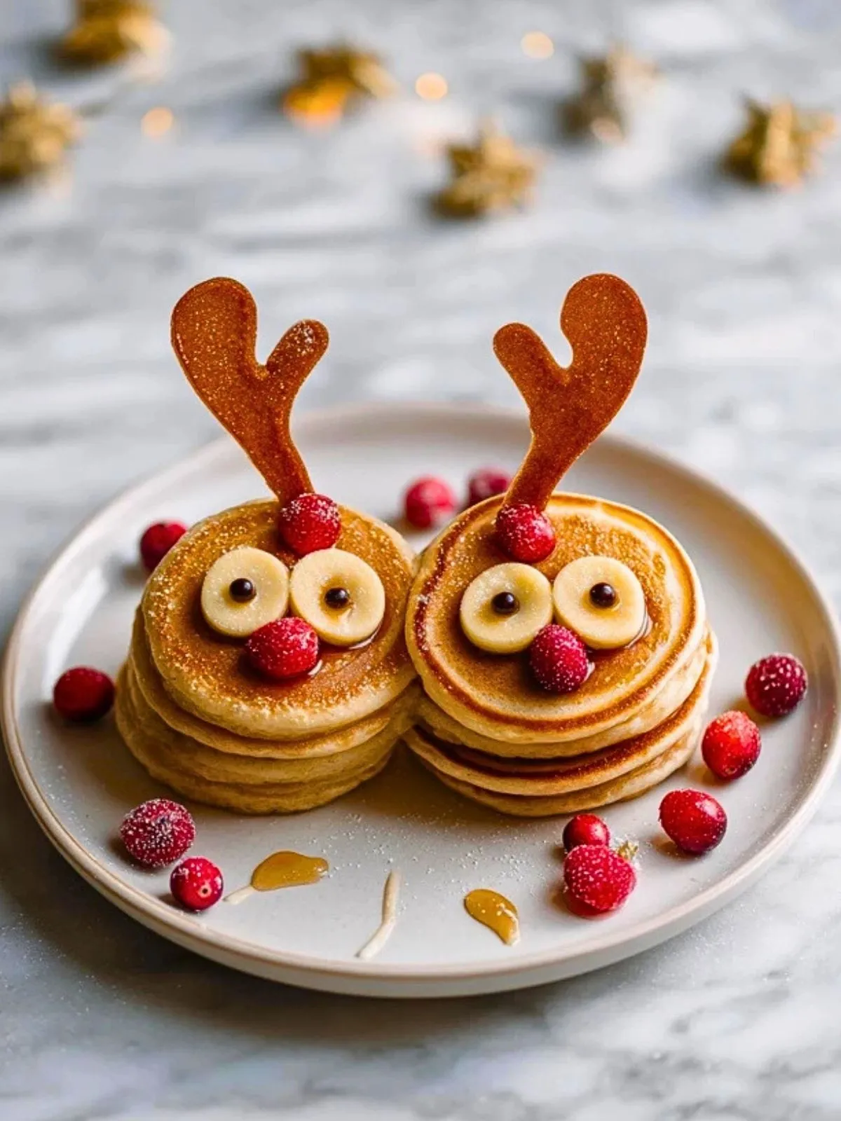 Des pancakes moelleux et festifs en forme de renne, parfaits pour les matins de Noël ou un brunch hivernal. Faciles à décorer avec les enfants, ils allient gourmandise et magie des fêtes.