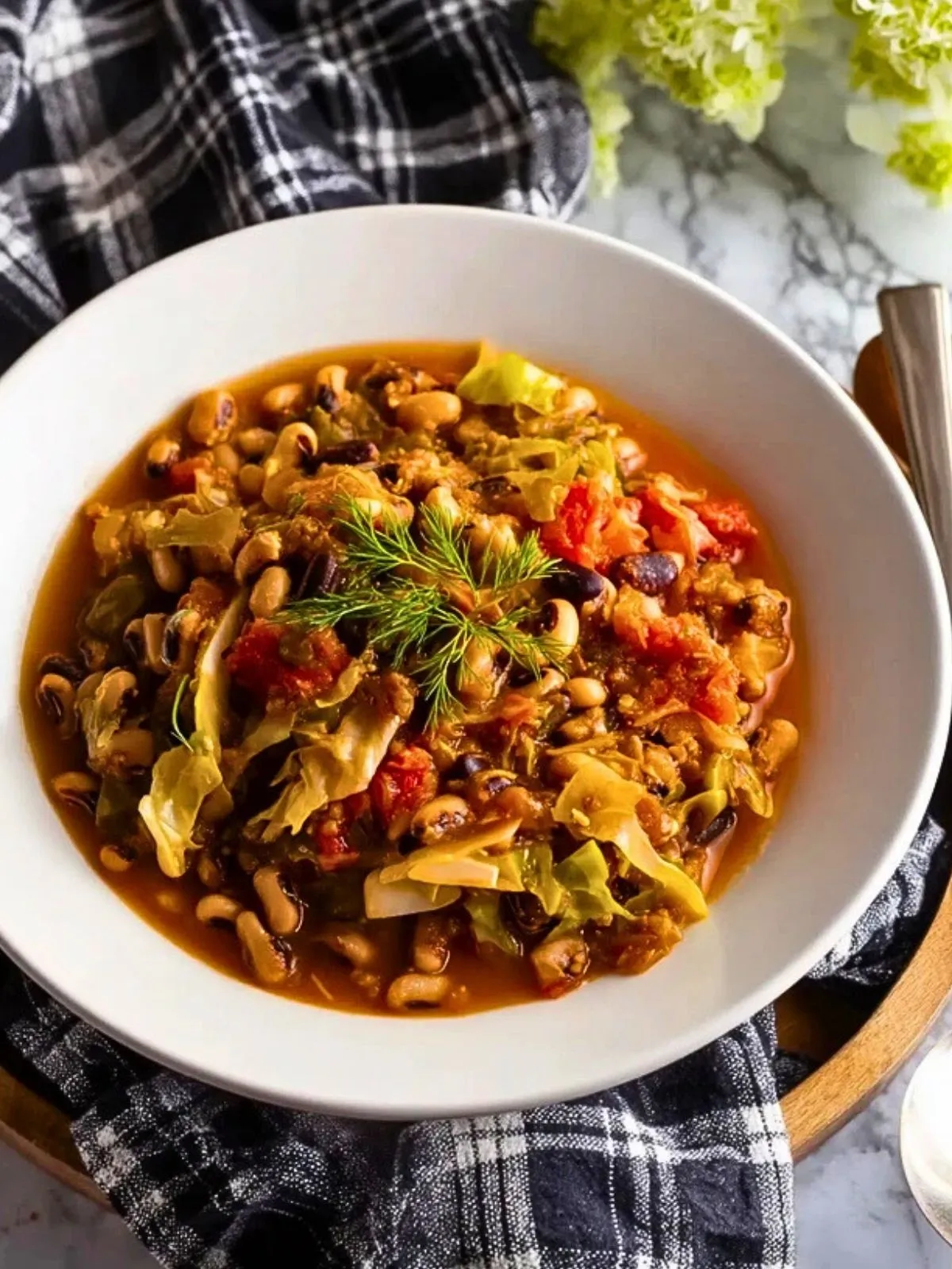 Keywords: pois noirs, chou, mijoté végétarien, plat réconfortant, recette hiver