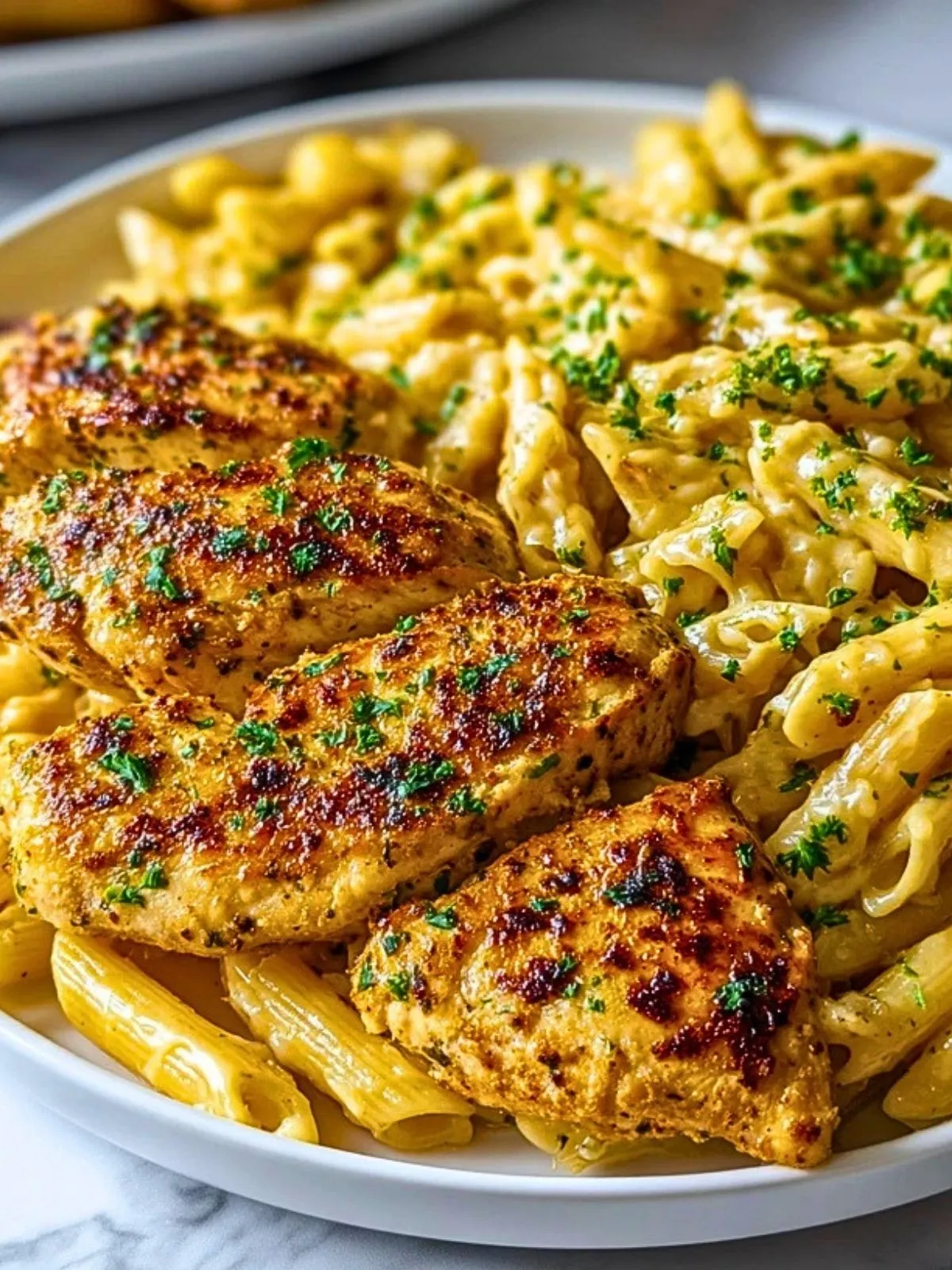 Poulet Ail Beurre Au Parmesan Avec Pâtes Pennes Crémeuses est le genre de plat que j’adore refaire quand je veux quelque chose de simple, chaleureux et vraiment savoureux. Entre le poulet bien doré, la sauce onctueuse et les pâtes qui capturent chaque goutte, tout est pensé pour un repas réconfortant et généreux.