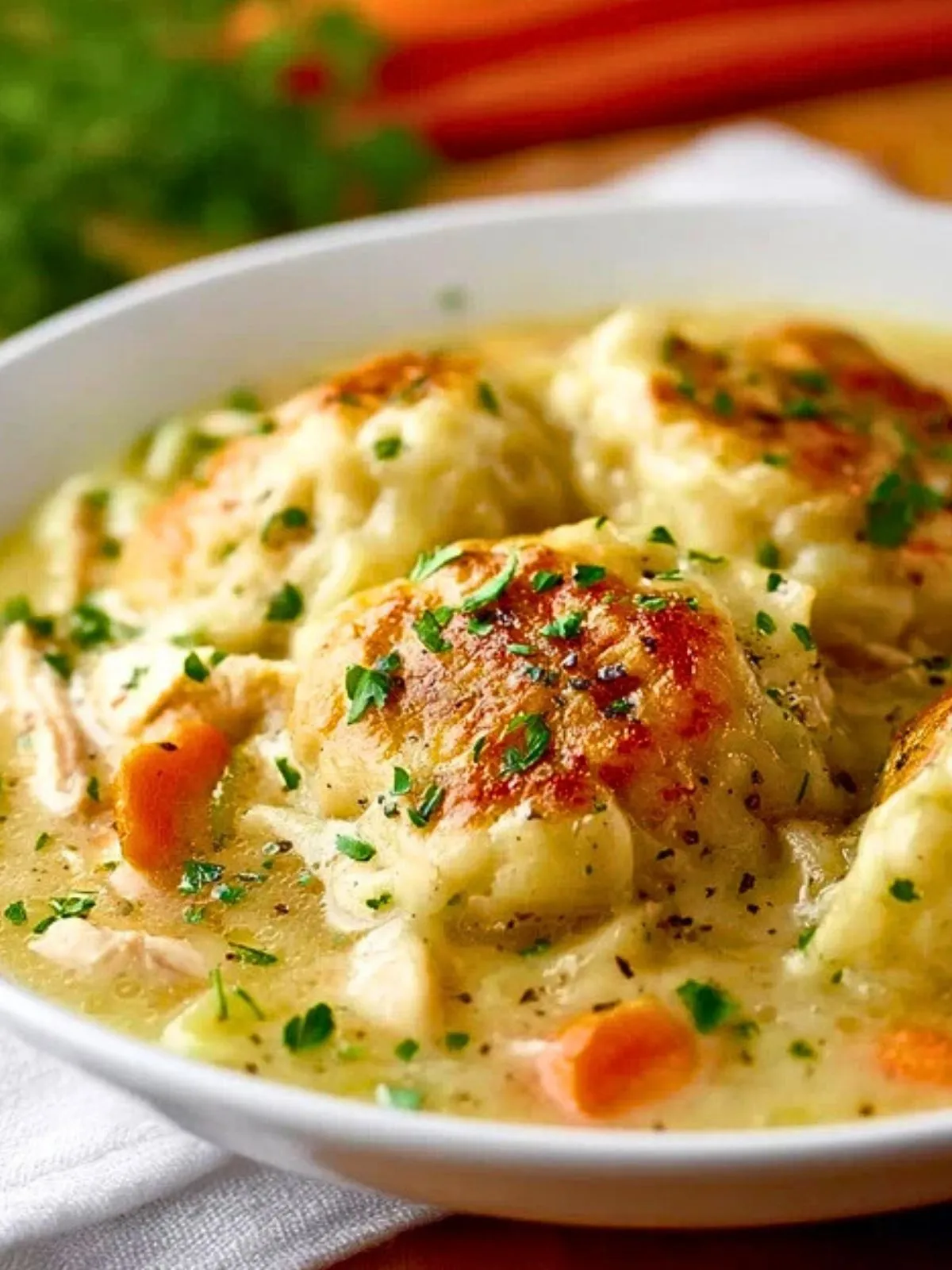 Un plat réconfortant à base de poulet mijoté et de dumplings moelleux cuits dans un bouillon savoureux. Idéal pour les repas en famille, cette recette traditionnelle est simple, généreuse et délicieuse.