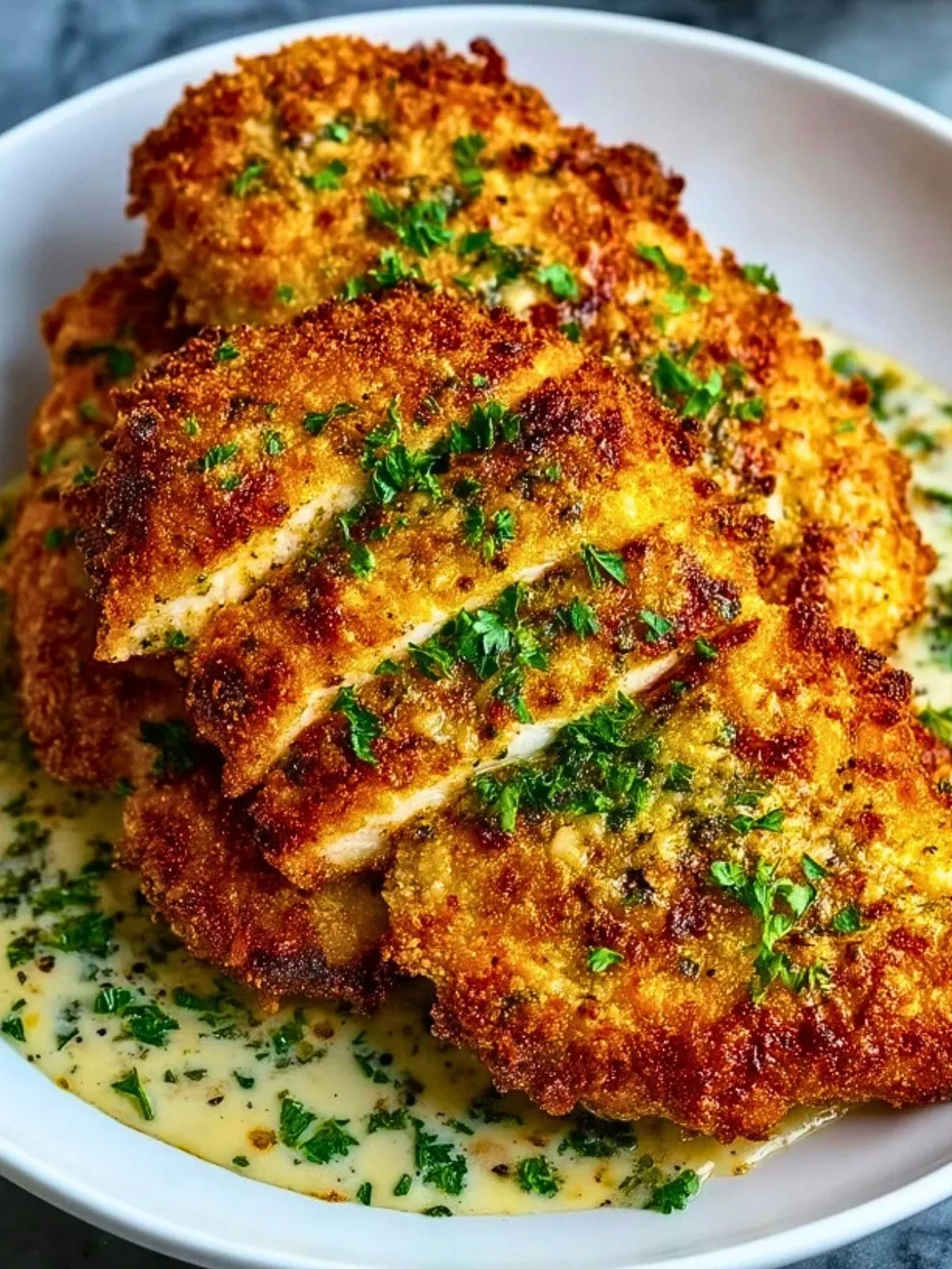 Un plat classique et réconfortant composé de filets de poulet croustillants nappés de sauce tomate et gratinés à la mozzarella. Facile, savoureux et parfait pour un dîner familial.