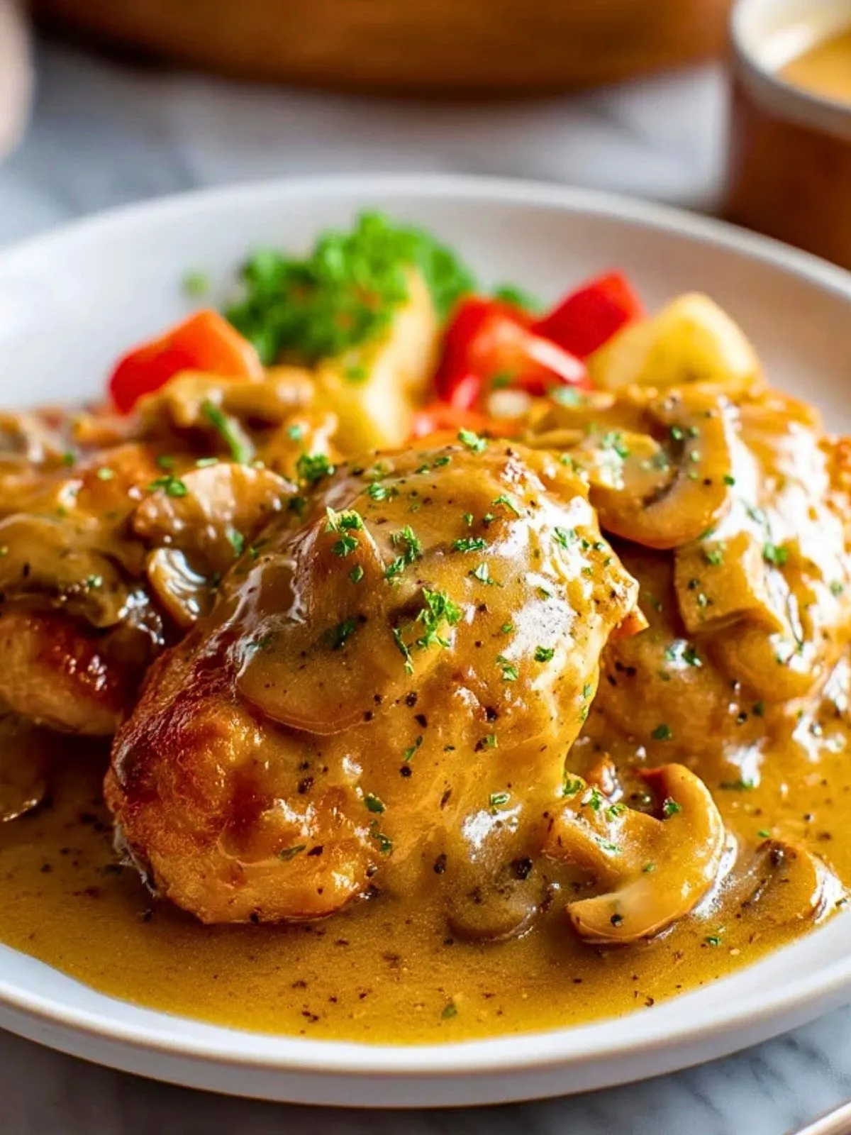 Je reviens sans cesse à ce poulet sauté avec sauce crémeuse quand j’ai besoin d’un dîner rapide mais qui fasse vraiment plaisir à tout le monde. La viande reste juteuse, la poêle embaume l’ail et les champignons, et la sauce nappante est parfaite pour être saucée avec un peu de pain ou servie sur des pâtes ou une purée maison.