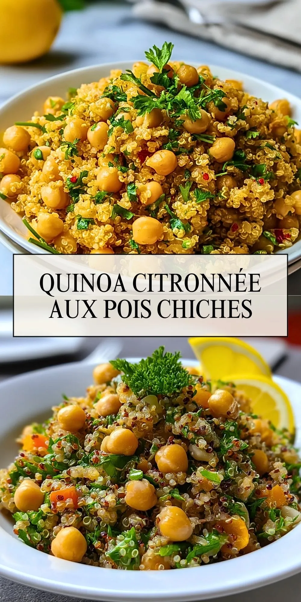 Keywords: quinoa, pois chiches, citron, salade, végétarien, rapide