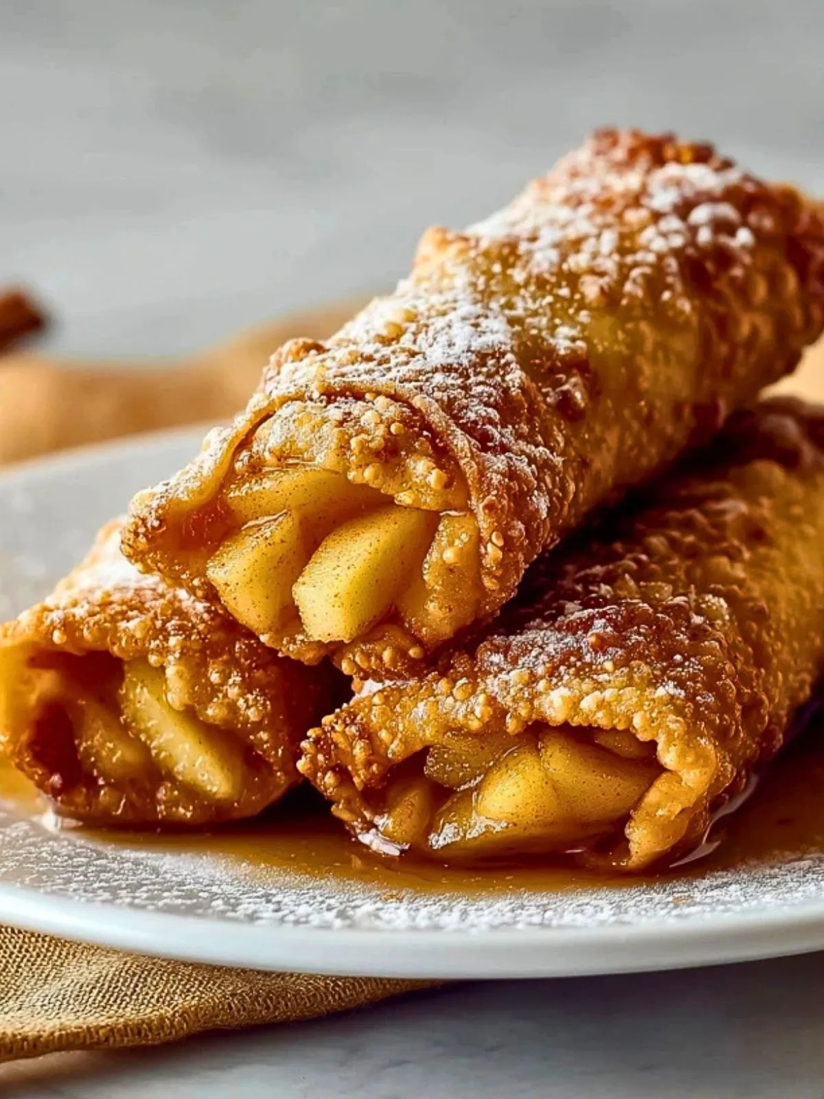 Je les sers souvent encore tièdes, saupoudrés de sucre glace, avec un filet de sauce caramel. Chaque bouchée me rappelle les beignets de fête foraine, mais en plus léger et plus élégant. En plus, ils sont parfaits à partager : chacun attrape un roulé avec les doigts, et le dessert devient tout de suite convivial.