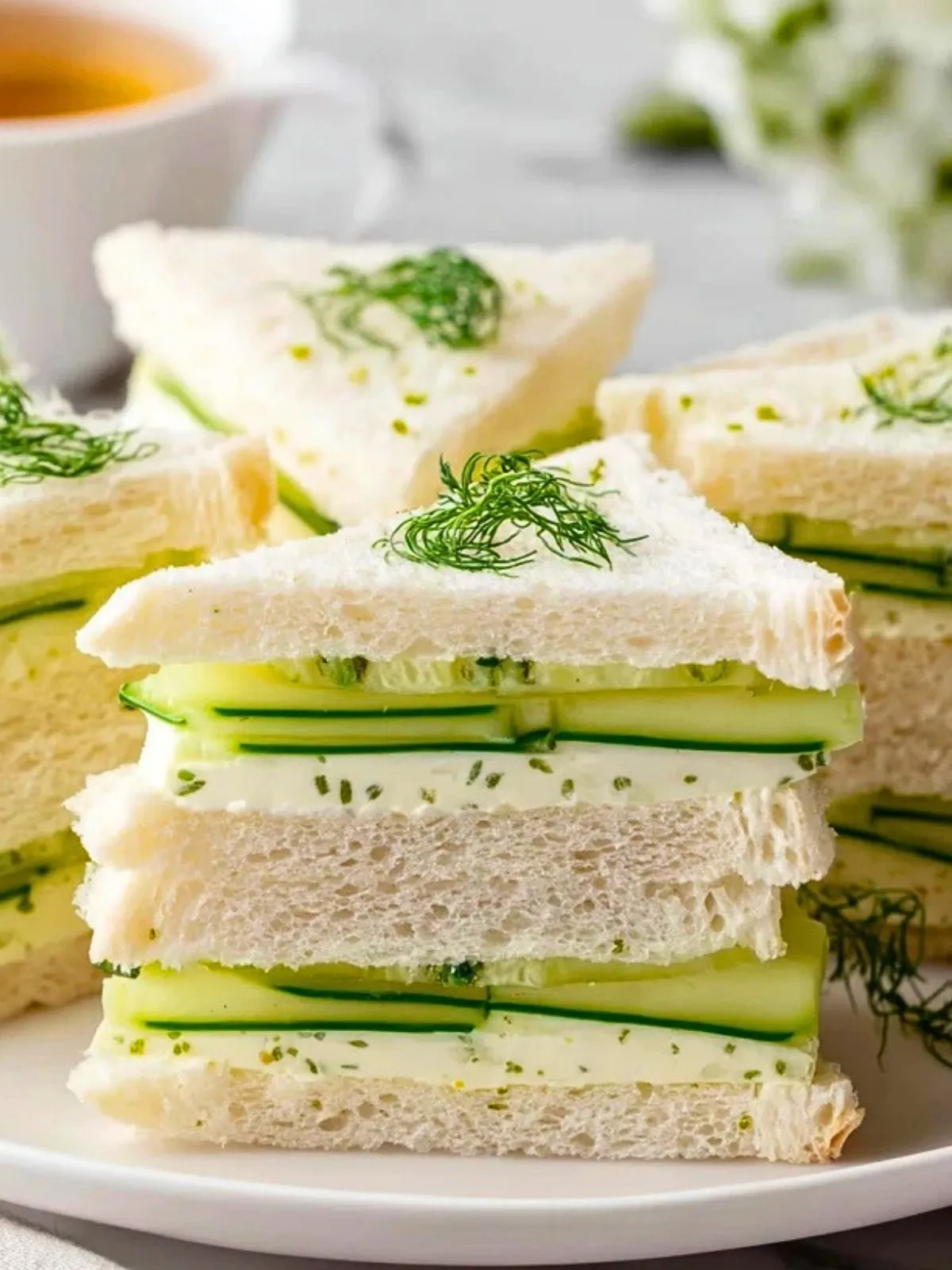 Sandwiches au concombre frais et crémeux, parfaits pour les brunchs, pique-niques ou buffets. Une recette rapide, légère et élégante.
