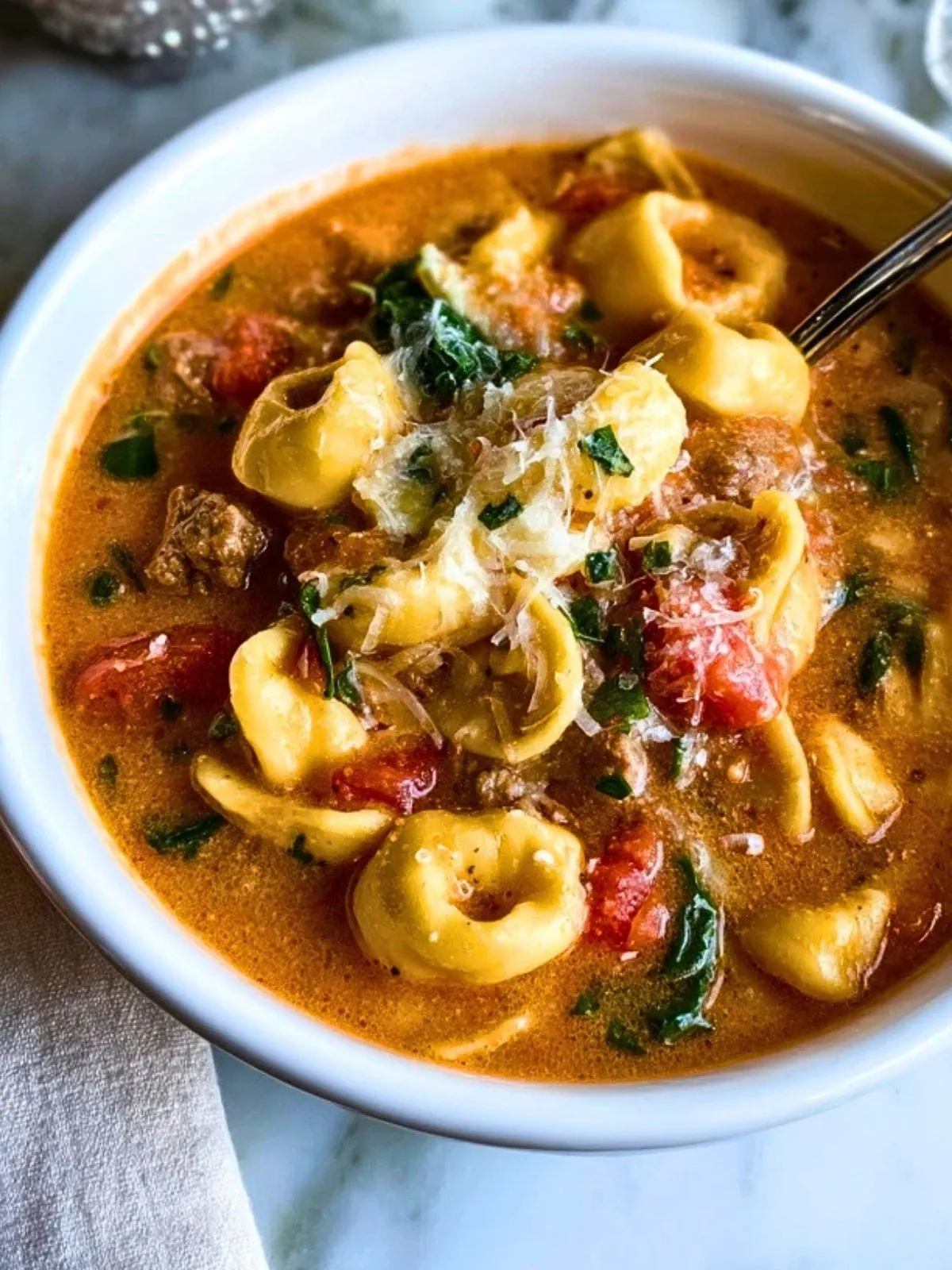 Ne laisse pas les pâtes cuire trop longtemps : elles continuent d’absorber le bouillon après la cuisson, donc une cuisson légèrement al dente permet de garder une soupe crémeuse et équilibrée.