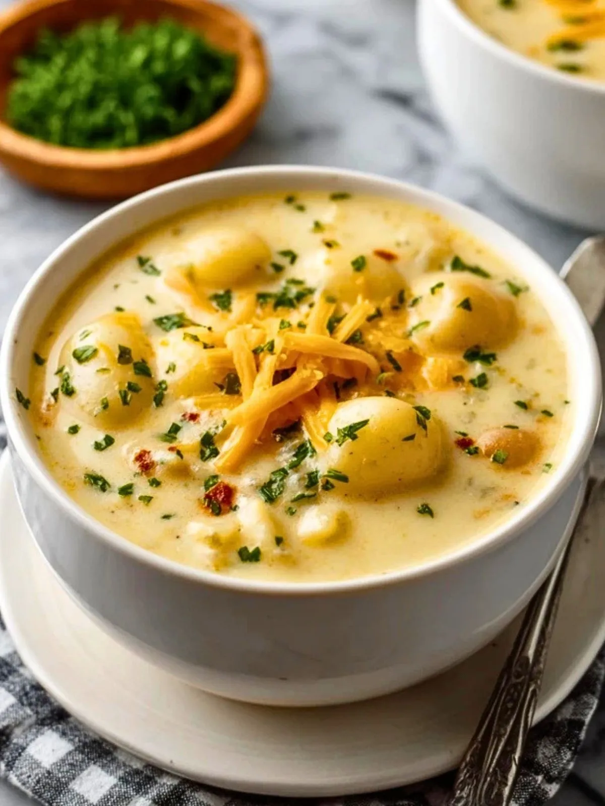 Cette soupe a tout pour plaire : elle est facile à préparer, économique et adaptable selon ce que vous avez sous la main. Les pommes de terre apportent une base naturellement crémeuse, l’oignon et l’ail construisent la saveur, et quelques garnitures comme du bacon croustillant, du fromage râpé ou de la ciboulette lui donnent encore plus de caractère.