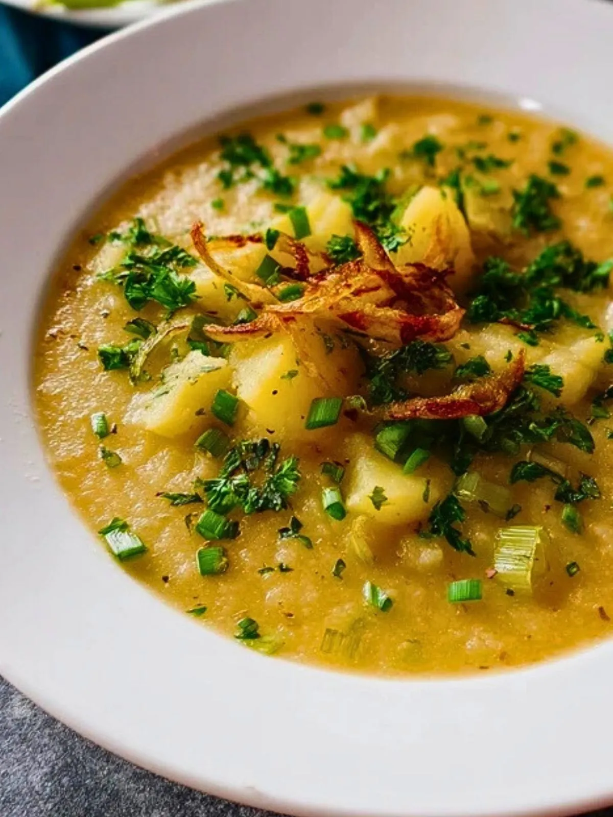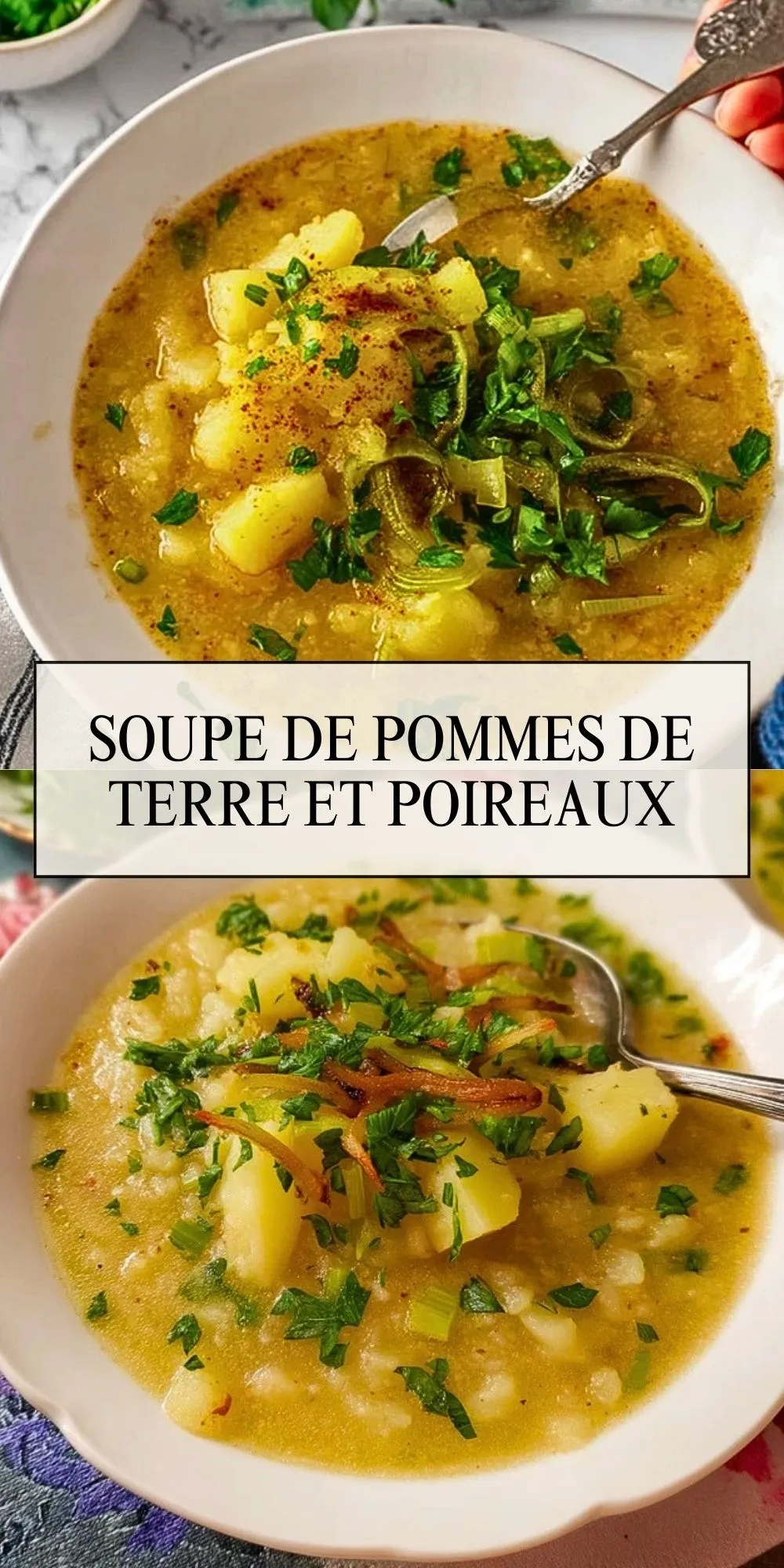 Soupe de pommes de terre et poireaux onctueuse et réconfortante, facile à préparer avec des ingrédients simples. Une recette familiale idéale pour les soirées fraîches.