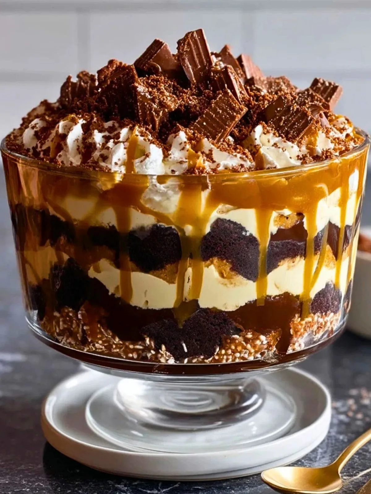 Le Trifle Au Cheesecake Au Caramel Salé Et Brownie est le genre de dessert qui attire tous les regards avant même la première bouchée. Entre son brownie chocolaté, sa crème onctueuse, son caramel salé coulant et sa finition généreuse, il transforme un simple moment sucré en véritable dessert de fête. C’est une recette que j’aime refaire dès que j’ai envie d’un effet waouh sans passer des heures en cuisine.